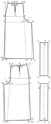 DD1 = 1,5 см, D1D2= 1 см, II1 = 2 см. Проводим линию низа изделия по тонам D2О I1.